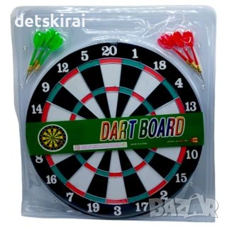 В комплекта са включени 4 стрели с остър метален връх, гарантиращи прецизност и стабилно сцепление с дъската. Ергономичните дръжки и олекотените пера осигуряват баланс и комфорт по време на игра, а компактният размер на дъската позволява лесно монтиране на стена или врата.