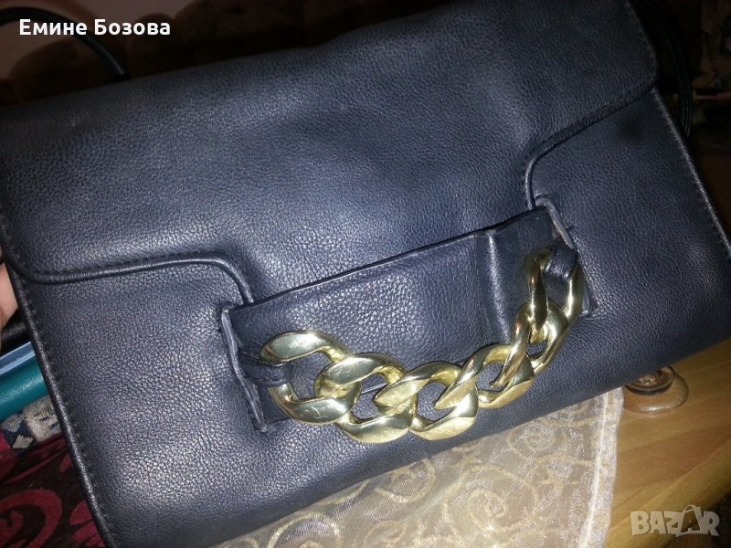5.Черна кожена чанта портмоне H#M със златиста тока 46/20см. .Цена14лв.
