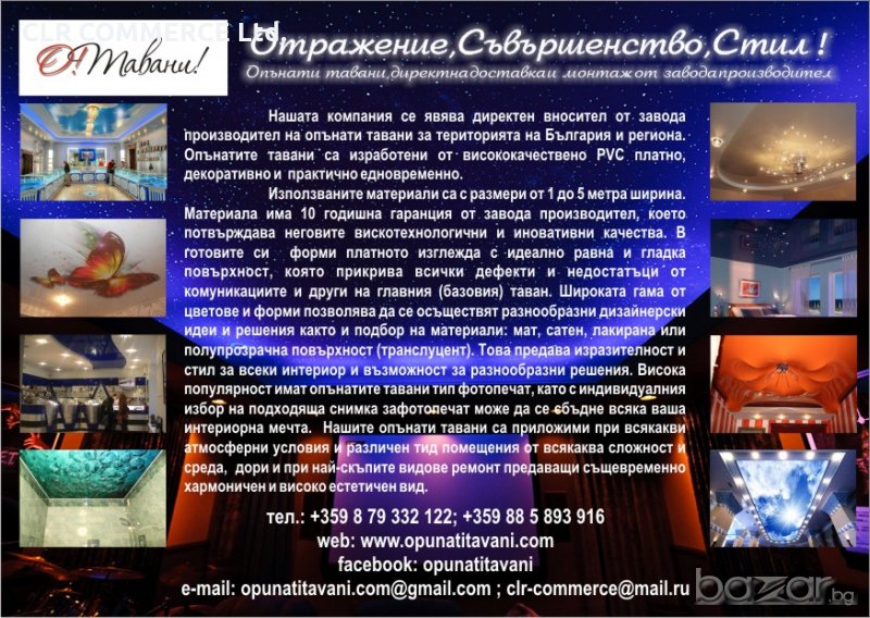 "Опънати Тавани" - директнa доставка и монтаж от завода производител!
