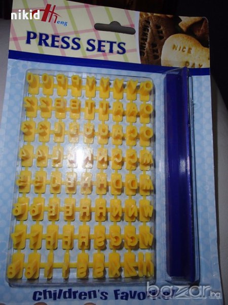 голяма Щампа печат надпис за сладки и бисквитки с числа цифри и букви латиница азбука символи фондан → Обява 12717918