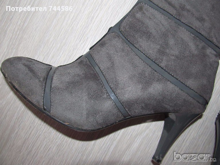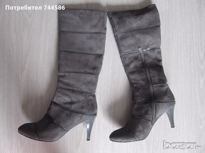 Дамски ботуш -сив,като на снимката е цвета-38 номер-отговарят си на номера.Като нови,обувани веднъж на повод.Височина на ток-9 см,а от петата нагоре-37 см.леки и удобни,но не са ми за ежедневие и затова ги продавам.Доставката със Спиди е най-евтина около 4.00 лв.