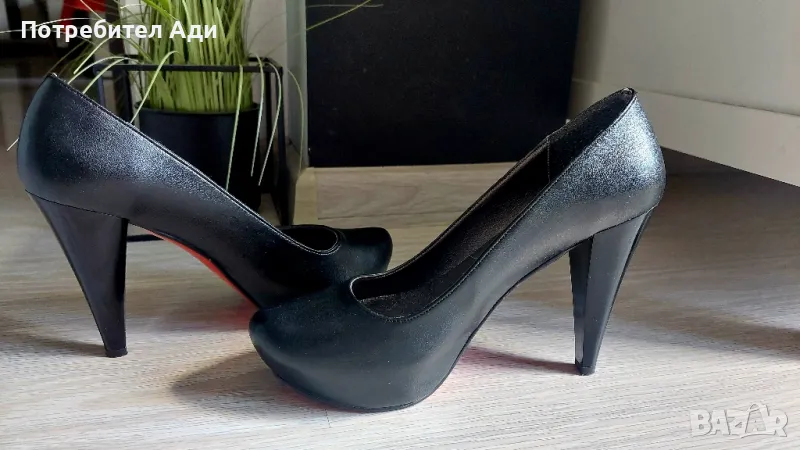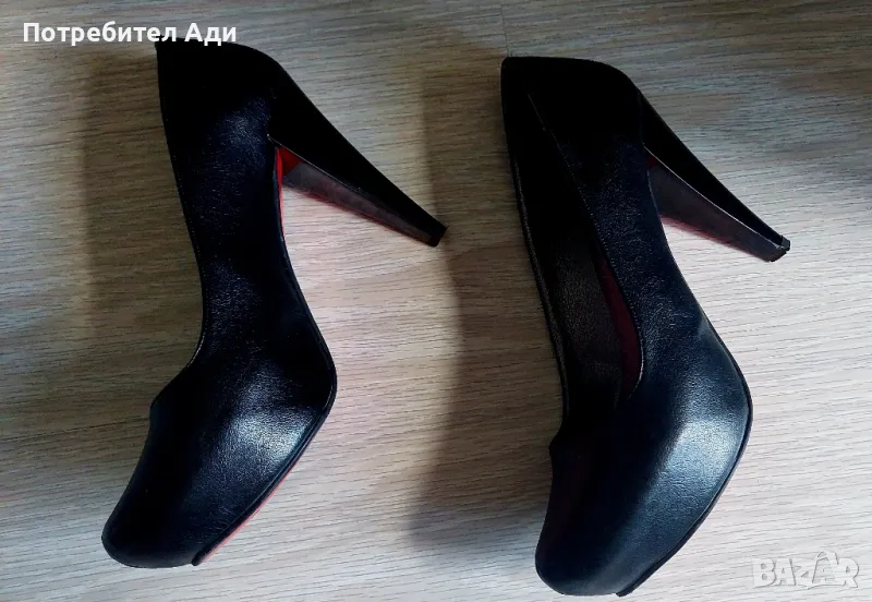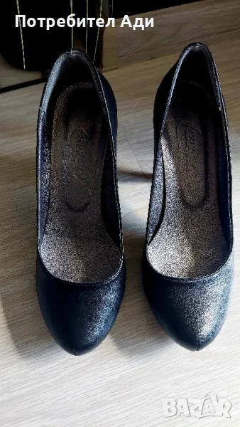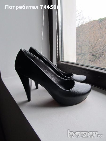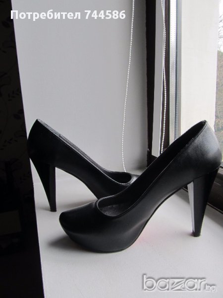 Обувките са обувани веднъж наскоро на сватба.Номер 37,но отговарят на 38.Черни с платформа отпред и това ги прави супер удобни,не се усеща ,че тока е 12 см.Български са.Цена в магазин-59,00 лв.