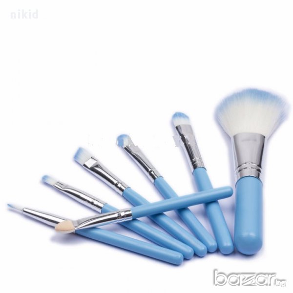 7 бр къси четки за грим сенки сини зелени розови дръжки гримиране → Обява 12791953
