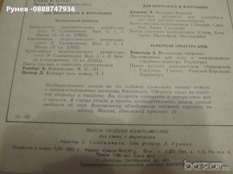 Песни на руски композитори - издание 1962 г. за ценители на класическата музика, класика → Обява 12798378