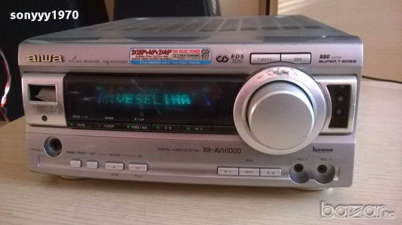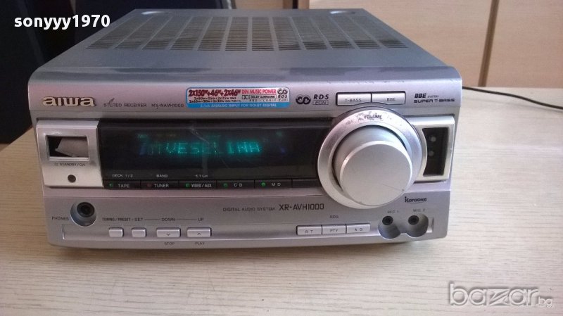 Aiwa mx-nawh1000ez-receiver 6 канала-внос швеицария...изходи за 6 колони...яка транзова машина...тъи си доиде от чужбина с забележките...повер бутона и от др страна също...работи идеално и е без ремонти...свири много здраво...тежка и маркова...тунер и усилвател и функция караоке-пращаме със спиди или еконт с преглед и тест след превод на капаро за куриерската услуга поради зачестили некоректни потребители-поръчки само тук в саита! по телефона и със смс не! краини цени! бартери не правиме! ПАРИ НЕ ВРЪЩАМЕ! всеки ден нови неща-още 2-3 наши обяви тук