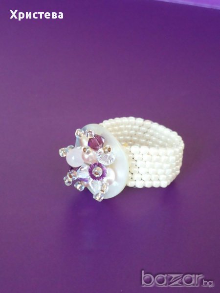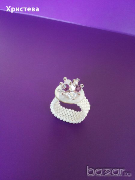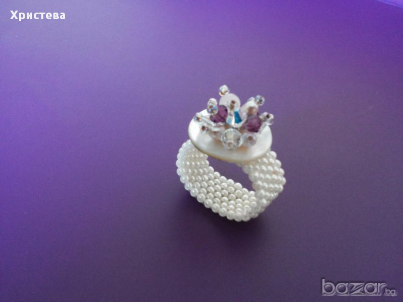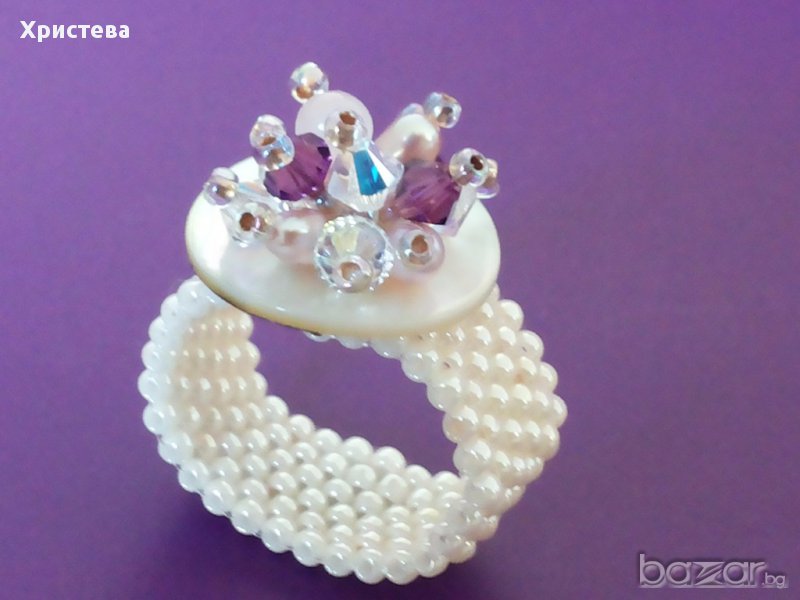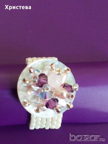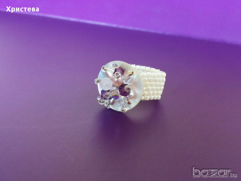 Пръстен с кристали,седеф и мъниста → Обява 12847736