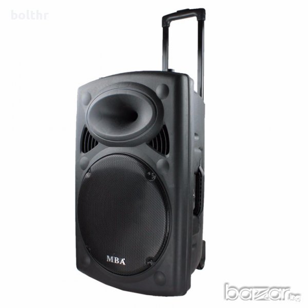 Най-новият модел тонколона MBA за караоке с Дисплей, FM тунер, Дистанционно, Bluetooth функция, безжичен микрофон и вече с още по-голям и по-мощен 15 инчов басов говорител. Идеална за улични музиканти, купони, презентации, караокета в хотели, ресторанти и др. Колоната е много удобна и за ползване на места където няма електричество, тъй като е с вграден мощен акумулатор.