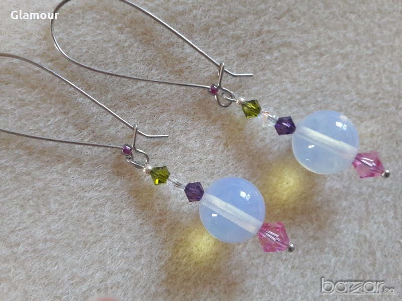 Обеци с лунен камък и кристали → Обява 12847769