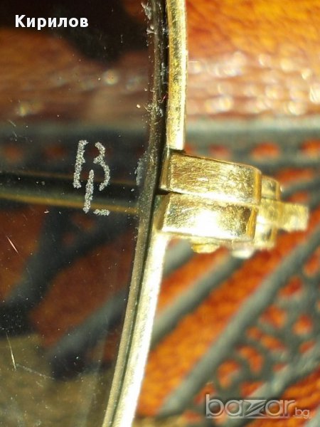 "Ray-Ban" гравиран с лазер на дясното стъкло и на двете "BL" в най-широките точки до шарнирите. Качеството е изключително, като здравина и изработка. Златни рамки.