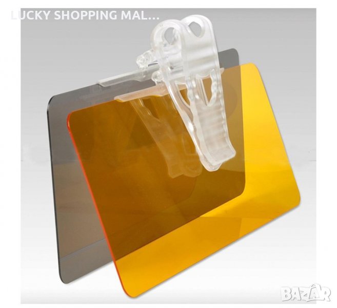 Изключително удобно средство за справяне със силни дразнещи светлини и отблясъци - 2 в 1 - с вариант за ден и за нощ. Изработено от специална материя, РММА, която да не пречи на погледа на шофьора, двата сенника са в различен цвят - дневен, със затъмнено сиво зелено покритие, и нощен вариант - в жълт цвят. Самите сенници са с фин прозрачен слой - протектор и от двете страни, против надраскване, който трябва да премахнете, преди да поставите на механичния сенник на колата. Универсален размер - може да се използва във всеки автомобил, посредством щипка, с която се захваща. Лесно можете да превключите от един в друг вариант. Когато не Ви е нужно, просто завъртете към тавана на колата - и все едно го няма. Забравете за всякакви отблясъци, дълги светлини, силни реклами, ултравиолетови лъчи. За по-безопасно и приятно щофиране. Перфектен подарък за шофьори. Размер: 30х13см. Транспортна опаковка.