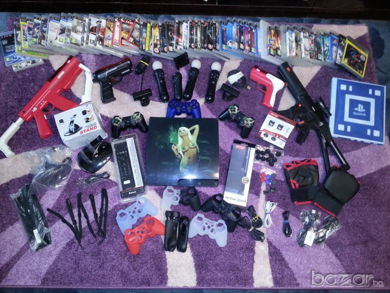 (Силиконови протектори и капачки за джойстици, USB кабели, Мове контролери, Зареждащи станции за контролери, wonderbook книги с игри, кормило с педали на Hama, комплекти- PS3 EA Sports Active 2, моушън ръкавици, стойки за конзолата, Джойстик Logitech Chillstream,, дистанционно за плейстейшън, и много много други неща)