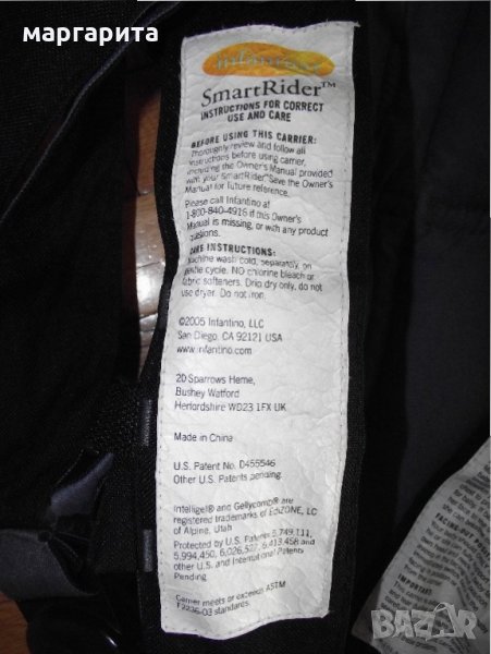 Infantino SmartRider за деца от 3,6-12кг ергономично разположени презрамки с гел система за удобство при продължително ползване.перфектно е при разходки или излети сред природата .възможно е детето да е с лице напред или към родителя също може да се носи и на гърба .качествен и полезен продукт .в перфектно състояние без забележки.