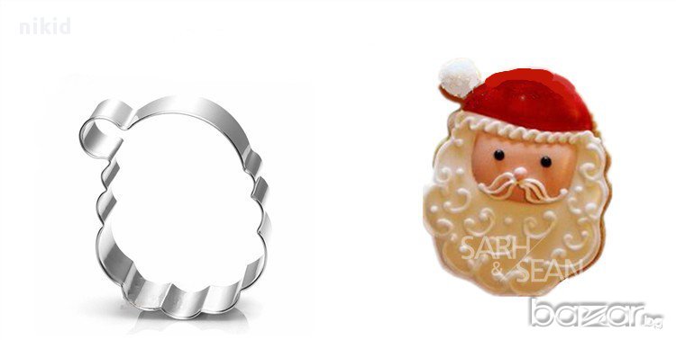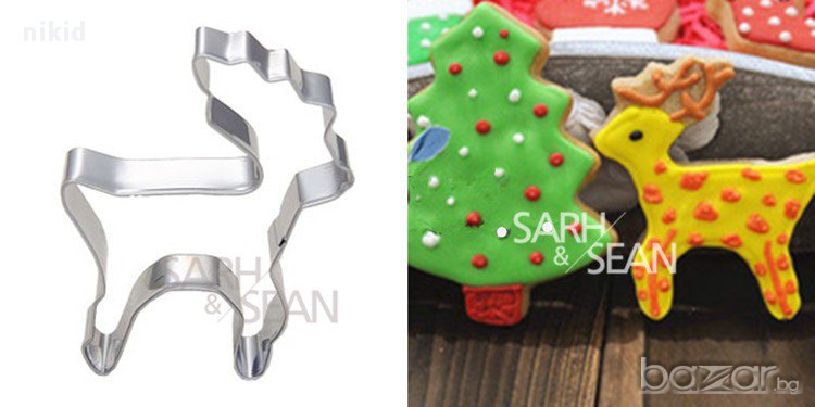 нов комплект от 5 бр празнични новогодишно коледни форми-дядо Коледа-елен-снежен човек-снежинка-бастун материал':неръждаема стомана размери 7.5-10.0cm дълж; 2.5-9.0cm широчина