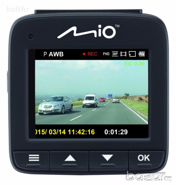 DVR записва филми с резолюция 1080p (Full HD) при 30 кадъра в секунда. Файловете се съхраняват на картата памет, а уредът използва технология H.264, която осигурява отлично качество на изображението във възможно най-малкия размер.Подобрена оптичностЧрез увеличаване на чувствителността на лещата, дори при слаба светлина, записът от видеорекордера DVR Mio ще бъде с високо качество. Цялата серия от видео рекордери DVR MiVue е снабдена с обектив, състоящ се от 5 или 6 стъклени лещи. Поради тази причина оборудването е с малки размери и предлага изключително високо качество на изображението при всякакви условия.Широк ъгъл на заснемане на изображенияОбектив с широк ъгъл на заснемане, без мъртва зона (140 градуса), който заснема широки и детайлни изображения.Фото режимВградената батерия позволява използването на устройството извън превозното средство за фото документация, в случай на нарушенияили пътни произшествия. Вграденият GPS модул (в определени модели MiVue видео рекордери DVR) ви маркира снимки с географски координати, поради което вие винаги ще знаете, кога точно са се случили.Екран 2,5’’ / 6,35cmС помоща на екрана може да преглеждате всичко, което камерата Mio MiVue е записала , също така бихте могли да възпроизвеждате видеоклиповете или снимките, които тя е заснела.Възпроизвеждане и споделяне на записиMio създаде свободен&nb