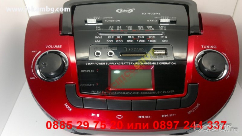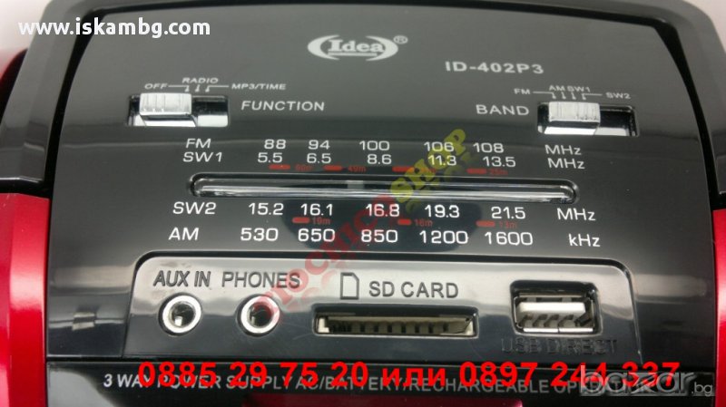 Радио с обхват в секторите AM/FM/SW и с USB/SD плейър+часовник USB/SD
