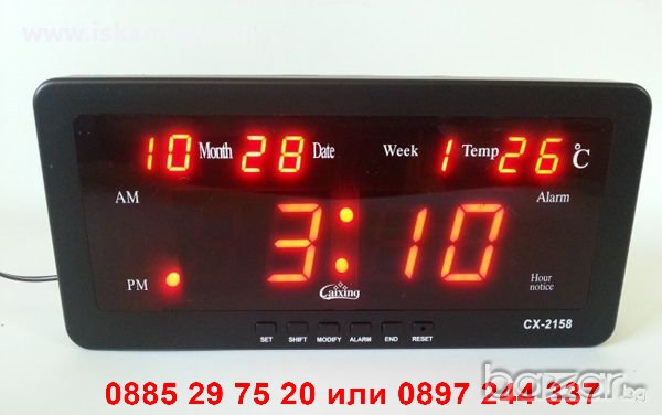 Този дигитален LED часовник е енергоефективен и има лесно четящ се светещ дисплей, което го прави видим и в тъмното. На дисплея се изписва освен часа и минутите, така също датата, месеца, седмицата и околната температура. Автоматично настройване на силата светене на дисплея - от 22 -00 до 7 -00 свети с 50% по-слабо.