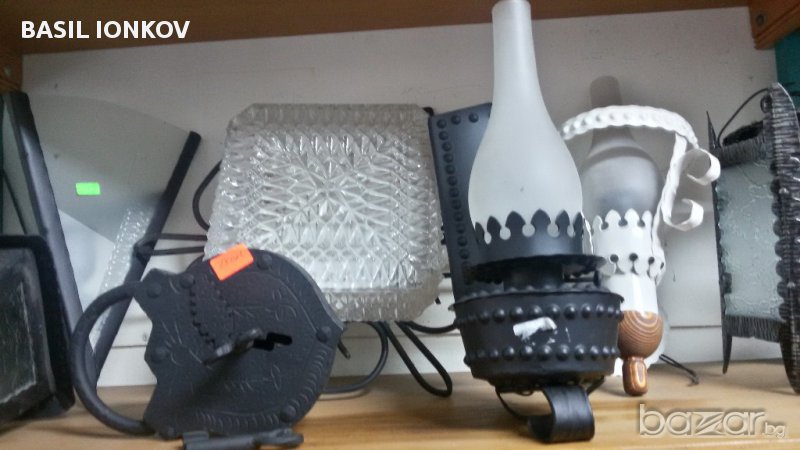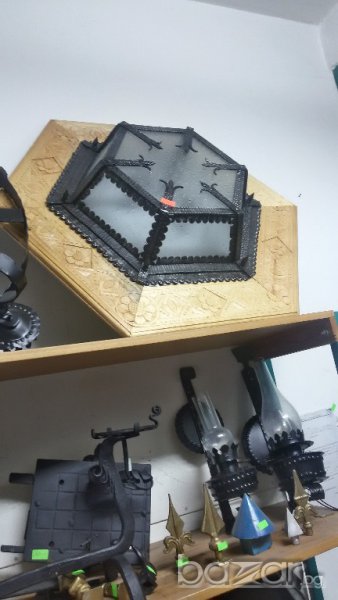 осветително тяло за таван -комбинирано с дьрворезба.второто тяло е фенер шестостенен за стена-ков.желязо.