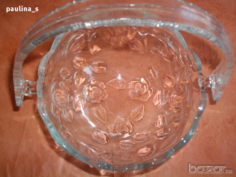 Фруктиера от масивно тежко стъкло с пластмасова дръжка. Нова, купена е от " IKEA" за 25лв.