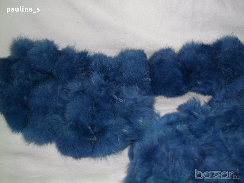Поради новите правила за заплащане на обновяванията на обявите, моля разгледайте и последните страници на профила ми, обявите са активни и евтини. Дамски шал "Боа" от естествена кожа-заек. Представлява гирлянд от много на брой малки сини топки, свързани със сатениран шнур. Може да се носи като шал зимата или като "Боа" към вечерен тоалет.