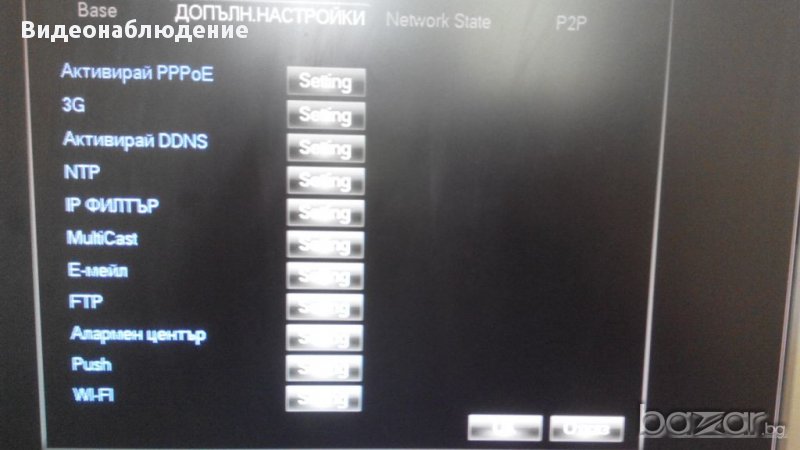 Мрежова поддръжка: P2P, DHCP, PPPOE, FTP, DNS, DDNS, NTP, UPNP, EMAIL, IP ACCESS, IP SEARCH, Aлармен център и т.н.