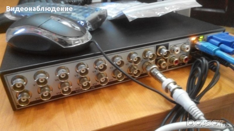 Пакета съдържа: 16 канален DVR, захранващ блок, дистанционно, мишка, диск със софтуер, инструкция.