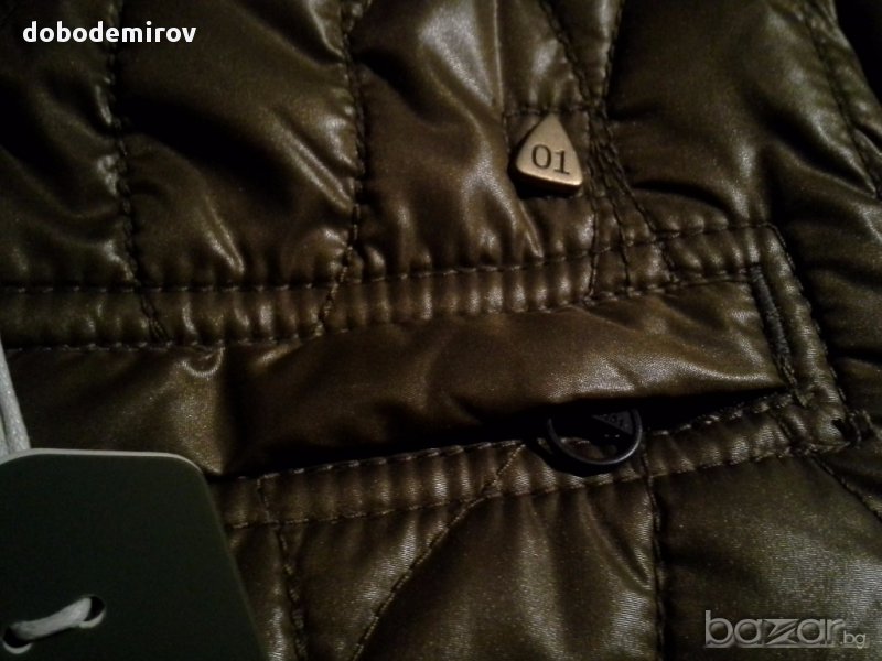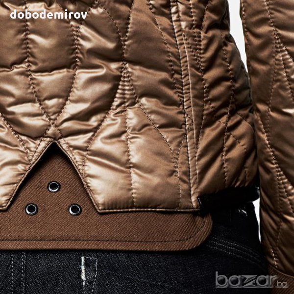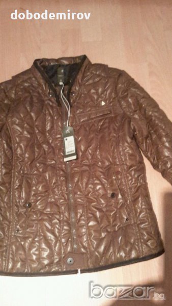 Втален модел на бранда с 3 предни джоба. Обкантено с естествена кожа около врата, маншетите и долната част. Етикетно лого отпред и отзад,