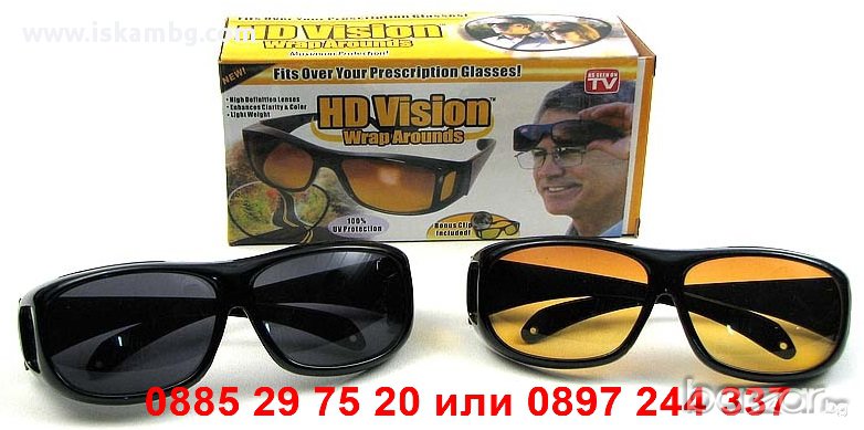 Два чифта очила за дневно и нощно шофиране HD Vision WrapArounds за перфектна видимост!