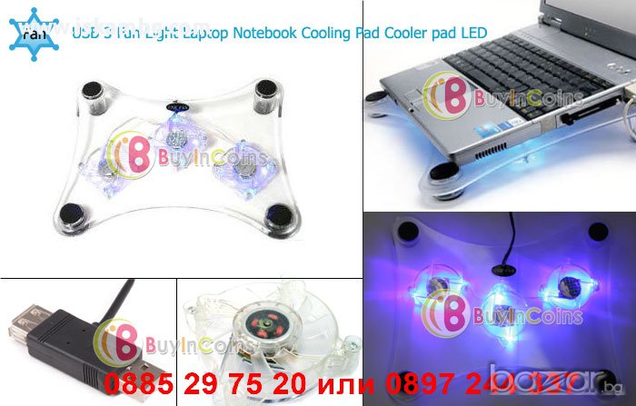 Охладител за лаптоп с 3 вентилатора - код 738 → Обява 13038672