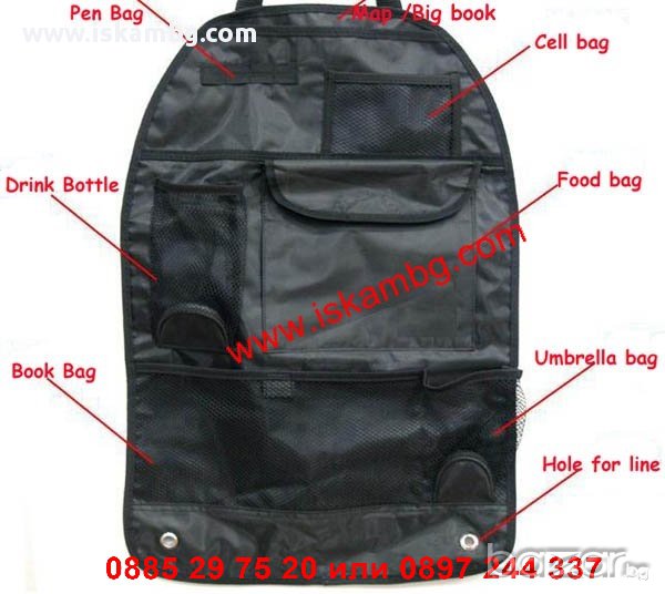 Органайзерът Auto Seat Organizer е предназначен за задната част на предните седалки на автомобила.