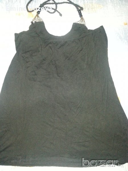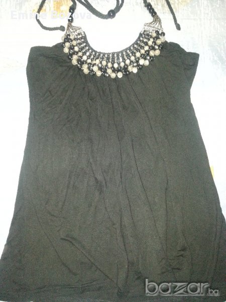 5. Черен потник Feierli ,размер S/M ,с мъниста и връзване на врата-3 лв. гърди 39 см. долу 65 см. дължина под мишник 50 см.