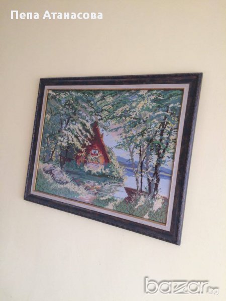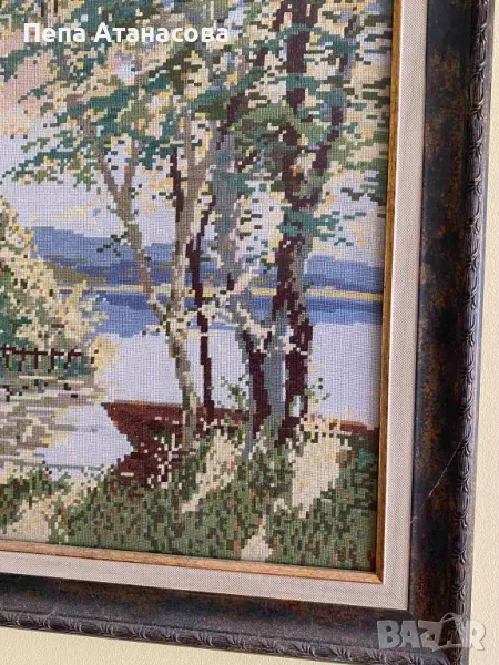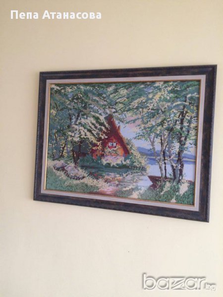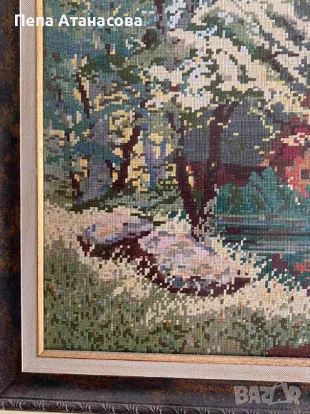 Вилеров гоблен, шит 1:4, ДМЦ конци, наситени пастелни цветове, перфектна професионална изработка, рамкиран с нова подходяща рамка и антирефлексно стъкло. Ушит е огледално. Размери без рамката 60 - 46 см. Разкошен е на живо! Чудесен за подарък с повод и без повод! Труден за изпълнение. Цената не се коментира!