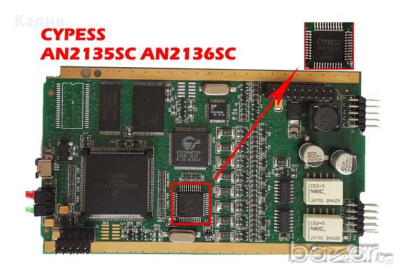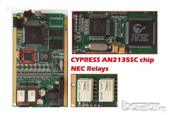 с пълноценно работещ CYPRESS Chip AN2135SC/AN2136SC + NEC/OMRON релета:
