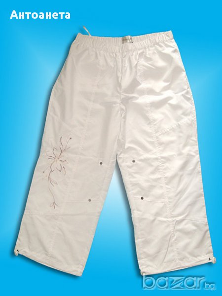 Дамски комплект: 7/8 панталон + елече с качулка, размер 50-52 XL, бял, 100% полиестер, изключително лек и красив.