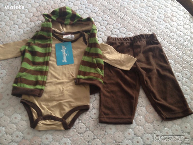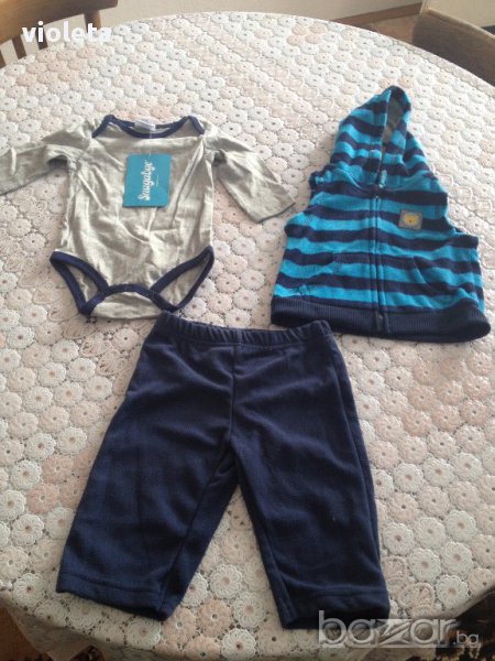 комплект от три части-памучно боди,панталон и елек с качулка. 6-9 месеца.