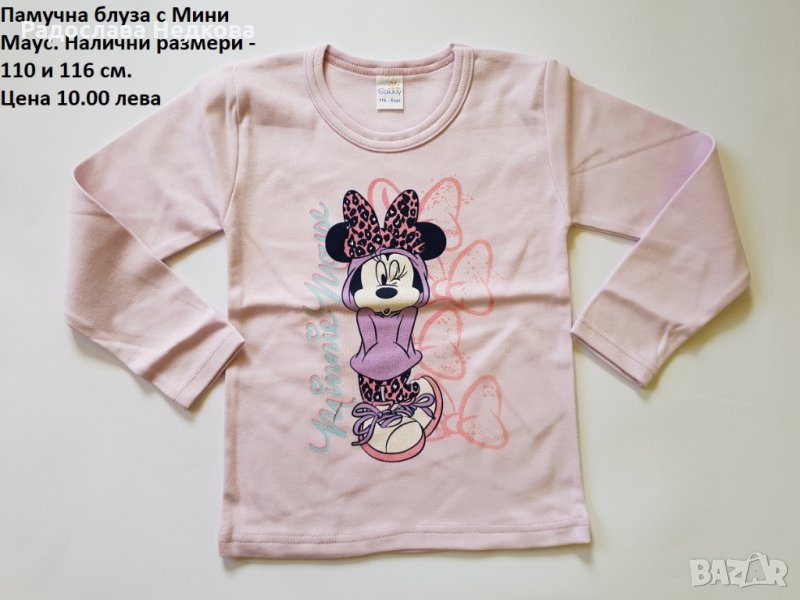 Страхотна памучна блузка с апликация на Мини Маус отпред. Българско производство! Налични размери и цветове: