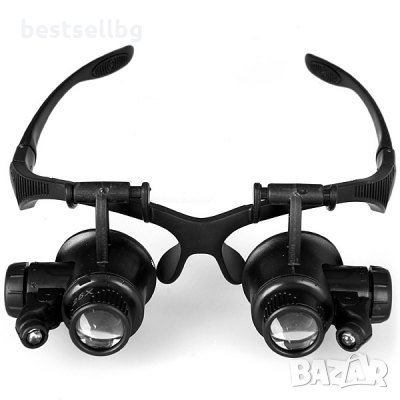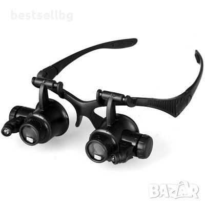 Лупа за глава с LED осветление за ремонт на часовници, компютри, лаптопи, фотоапарати и други предмети, запояване, четене, шиене на гоблени, бродиране, рисуване, злато, маникюр, бижута, монети, всякакъв вид работа и други дейности, в които се изисква увеличение и осветление.
