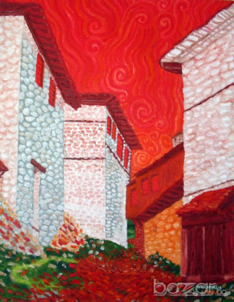 "Уличка в с. Лещен в импресионистичен стил", завършена 2000 г.