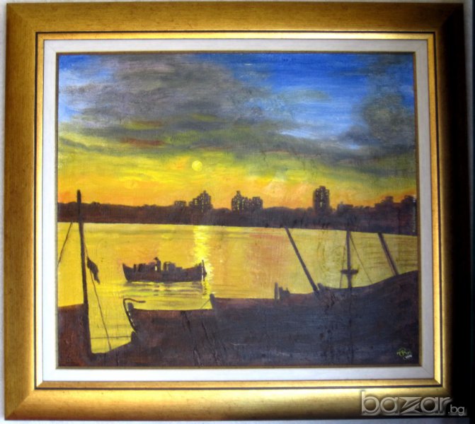 "Слънчев бряг - залез", маслена картина, Стен Леон, 1998 г.