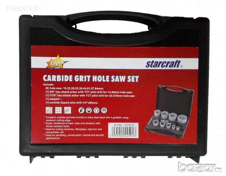 19-64мм Боркорони с карбидно покритие - комплект 13 ч., 534106