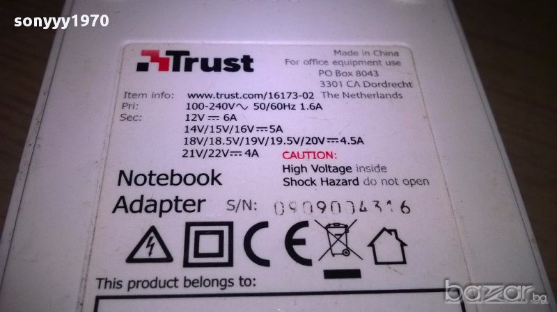 Trust 90w/12-22voltts-notebook adapter-universal-внос швеицария...марково и работещо...тествано и е ок...мощно с кабели и е внесено вчера в бг-пращаме със спиди или еконт с преглед и тест след превод на капаро за куриерската услуга поради зачестили некоректни потребители-поръчки само тук в саита! по телефона и със смс не! краини цени! бартери не правиме! ПАРИ НЕ ВРЪЩАМЕ! всеки ден нови неща-още 2-3 наши обяви тук
