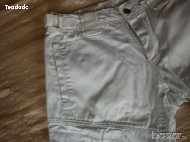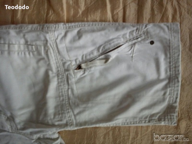 Къси мъжки vintage панталони Jack Jones. Бели на цвят, размер М. Страхотен модел, в добро състояние, малко са носени. Купени са с малък дефект (на една от снимките се вижда), незабележим от непрофисионално око, а и торбата на задния джоб прикрива. При интерес ще дам точни размери. използвана. Изпращам по куриер, с опция преглед и тест.