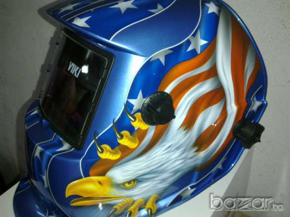 Уникално красива маска подходяша за електрожен ЦО и друга заваръчна техника,С най-голямия визьор за за перфектно виждане, СВЕТЛА ЧАСТ ДИН 4,9-13.