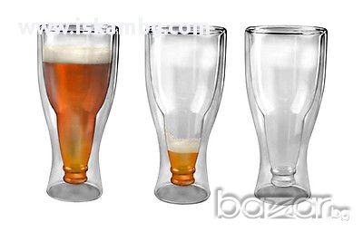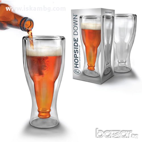 Бутилка в чаша - страхотен подарък за феновете на бирата! След напълване на чашата, тя изглежда като обърната бутилка. Ефектния и нетрадиционен дизайн я превръща оригинален подарък, за всеки, който обича бирата!