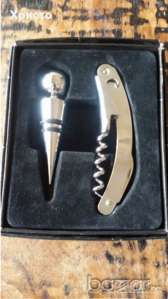 Продавам нов комплект аксесоари за вино в картонена кутия - 3 предмета . Размер на кутията 12х16 см снимка 1 - 8 евро; снимка 2 с 2 предмета -7 eвро
