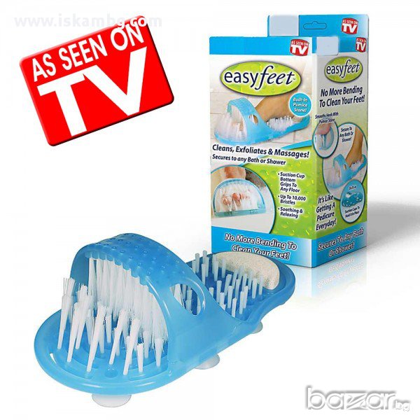 Easy Feet се прикрепя към всяка баня или вана, снабден с 1000 ексфолиращи влакна почиства и масажира краката ви без никакво усилие от ваша страна!Просто поставете течен сапун, раздвижете крака си и се насладете на това невероятно удоволствие!