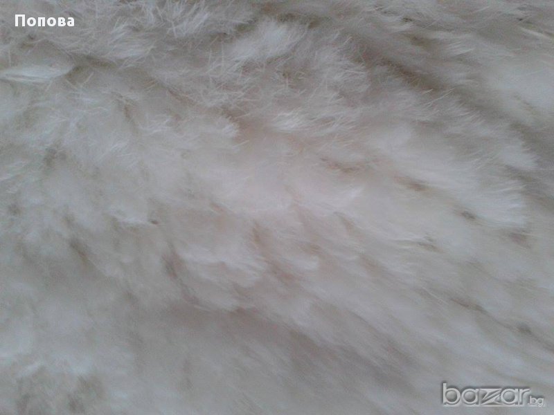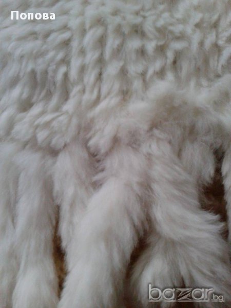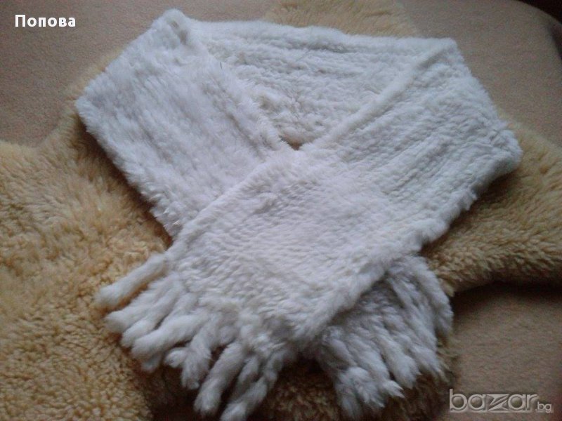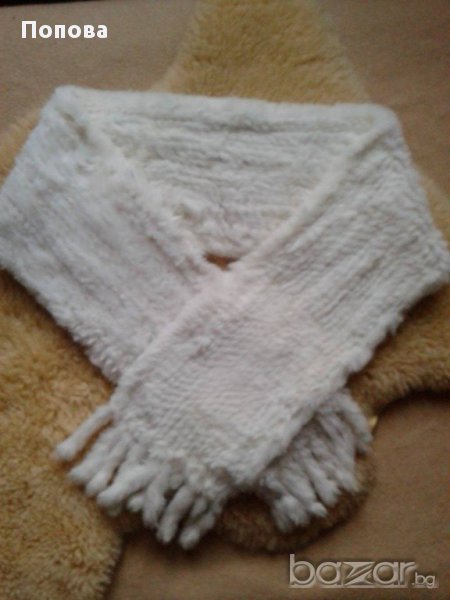 Снежно бяла пухкава феерия от естествена заешка кожа и плетиво.Дължина от край до край 167 см.,ширина 20 см.. Супер състояние.