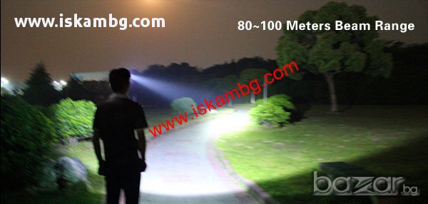 Ярка светлина /осветителен елементг тип CREE 1800 lm. - Eксплоатационен срок на осветителният елемент-около 100 000 часа. Характеристики: - Захранване: литиеви батерии (включени в комплекта)
