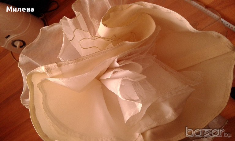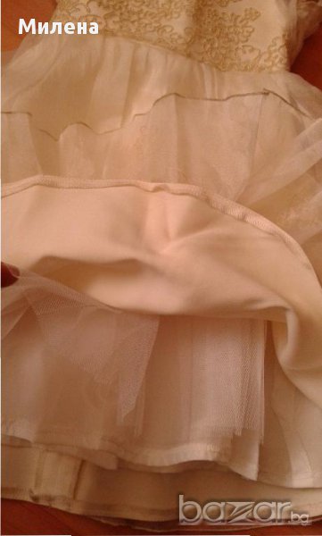 Страхотна, бутикова рокля за малка принцеса. Роклята е шита по поръчка, точно копие на сватбената рокля на булката - от булчинска къща Романтика. Размера е за 1,5-2,5г момиченце. С дантели, шифон, тюл. Напълно запазена, носена само 1 път. Може и под наем!
