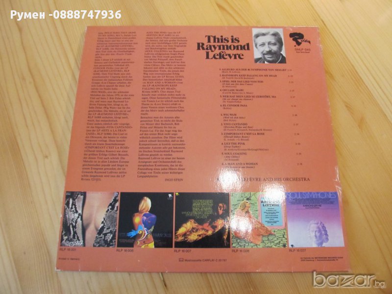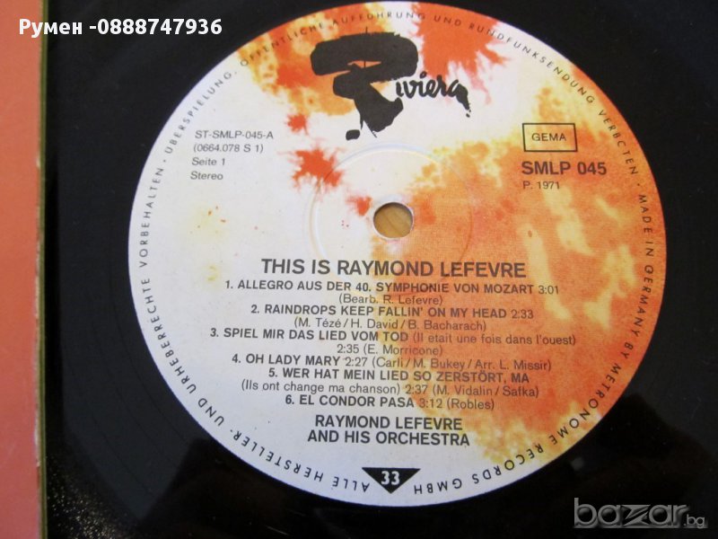 Грамофонна плоча Raymond Lefevre с оркесър - This Is Raymond Lefevre GEMA - Germany изд.1971г.
