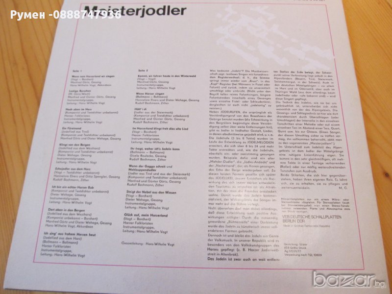 Грамофонна плоча Meisterjodler - немски планинарски песни ETERNA - GDR GERMANY изд.1977г.